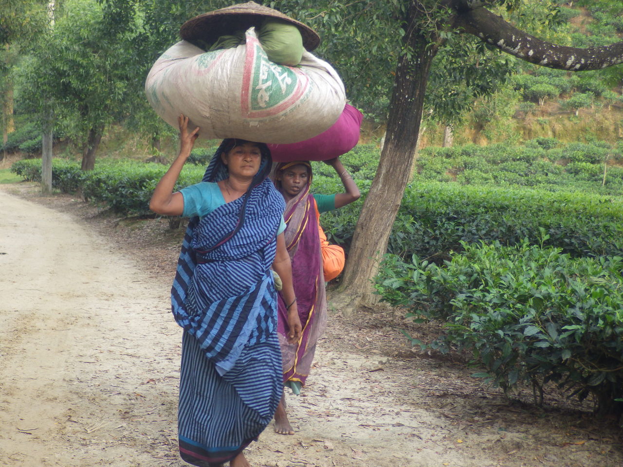 帰り道、大きなお茶の袋を担いだお母さんたちに会いました。あんなにたくさんのお茶を摘んで、1日たったの70taka(約105円)の収入です。如何に生活が苦しいかわかります。