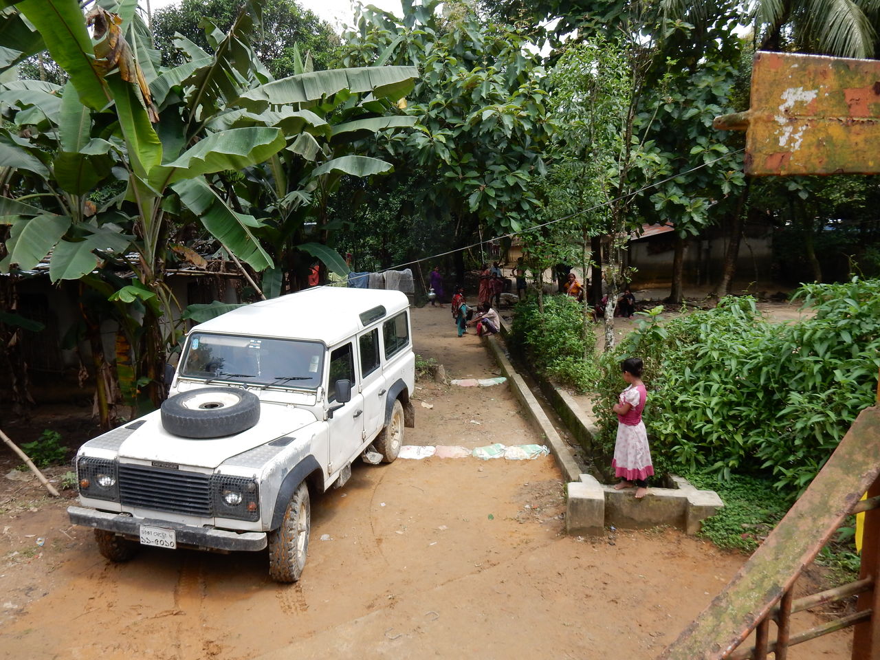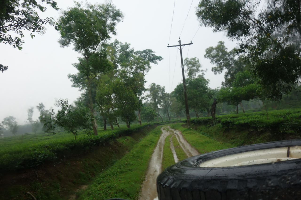 幹線道路から離れ、両側に茶農園の広がる景色の中を、年代物のランドローバーで走っていきます。天候は雨・・・ひどく強い雨が降っていました。もともとぬかるんでいた所に、朝からの雨で、道路状態は最悪。何度も水たまりにはまりながら進んでいきます。東京ディズニーシーのインディジョーンズを彷彿させるようなBad condition、何とか学校までたどり着きました。