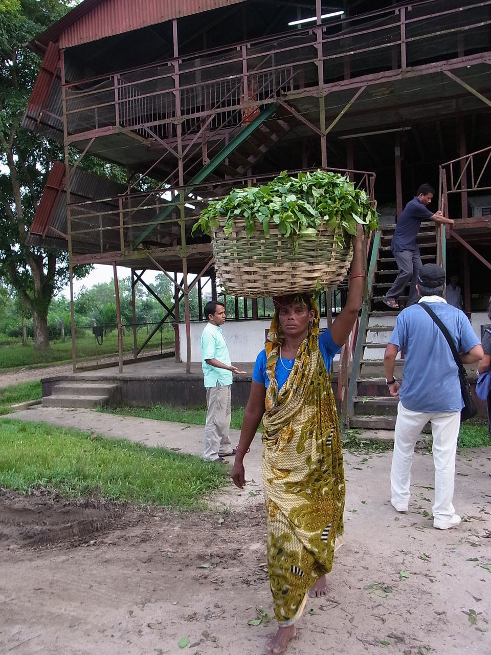 紅茶の精製工場にもよりました。ここでも1日中工場内でお茶を運ぶお母さんに会いました。あんな重い荷物を頭に載せて、1日に何往復もするのかと思うと、その重労働さにつらくなります。そして給料は茶園の女性と同じく1日70taka。何を思い、何を考え、1日中お茶を運んでいるのでしょうか。