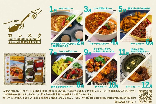 月1000円の教育支援で、人気のESAスパイスキットが毎月1つ送られてくる、新しいサブスク支援が誕生しました。